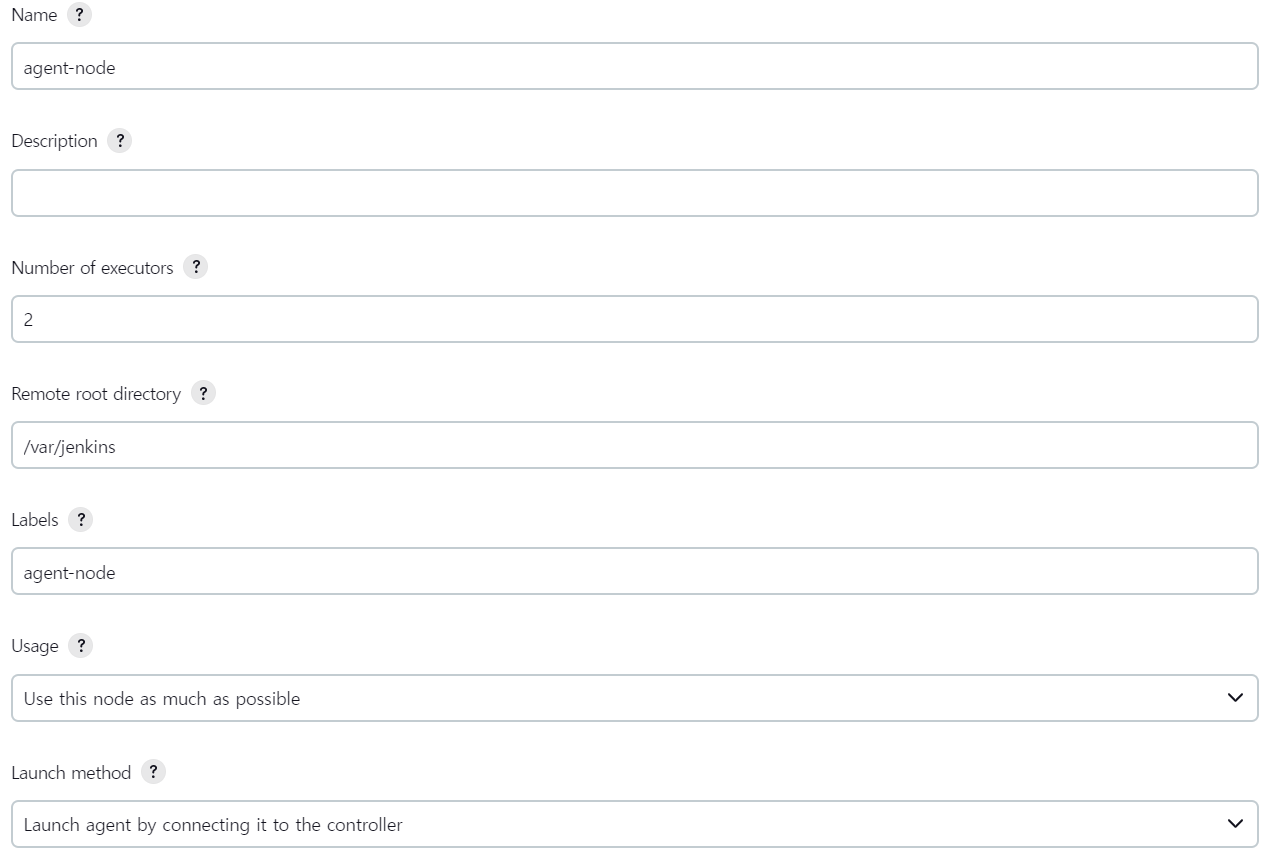Remote root directory : slave jenkins 서버 내 directory 경로를 의미하며, 해당 서버에 들어가서 해당 directory 를 미리 생성해놔야 합니다. (mkdir /var/jenkins)