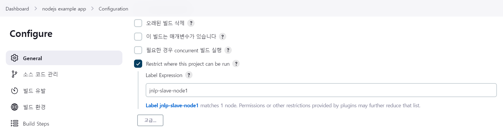 연동하고자 하는 프로젝트 설정에 들어가서 아래와 같이 node 의 label 을 선택합니다.