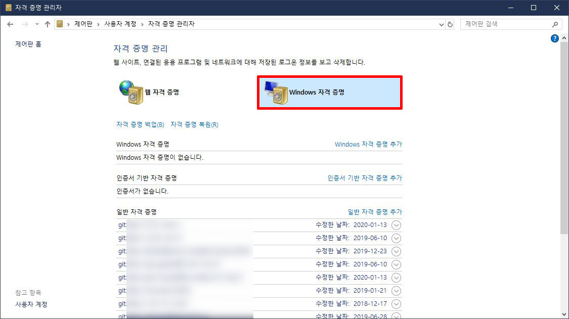 Windows 자격 증명 관리 선택