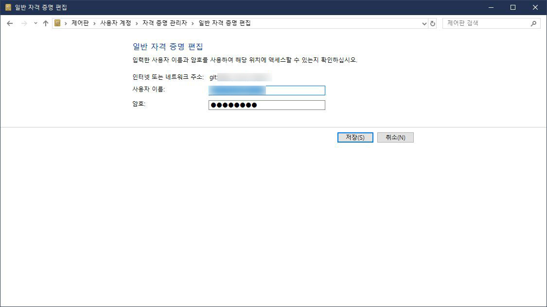 'https://github.com/accountName' 까지만 작성해서 모든 repository 에 대한 자격증명 추가해도 된다.